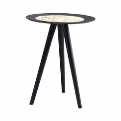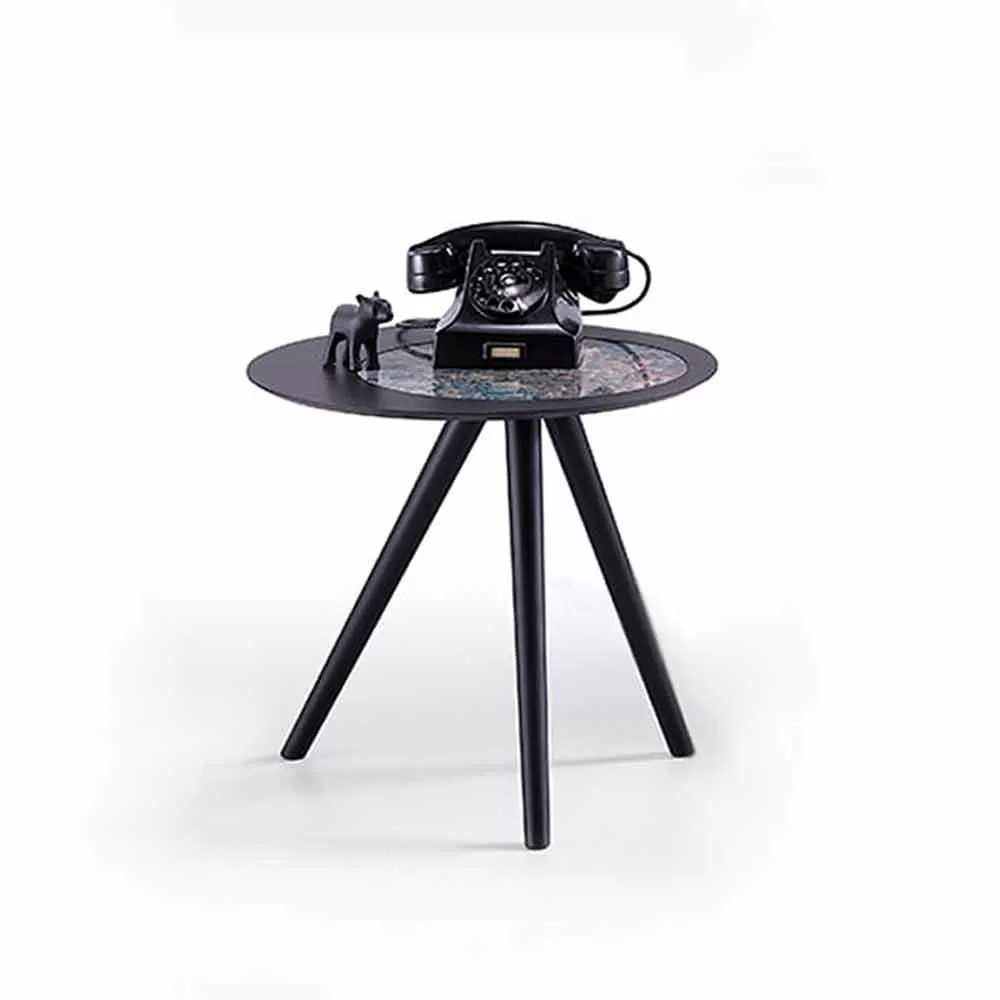 Coffee table made in Italy with black gray lacquered beech wood structure and round top in 1.2 cm thick glossy or opaque stoneware marble .