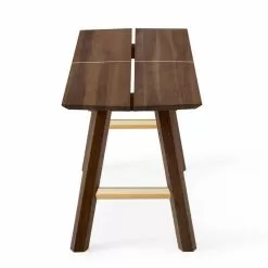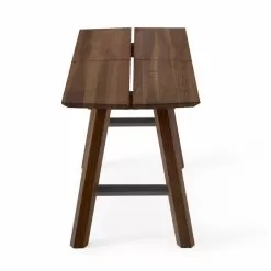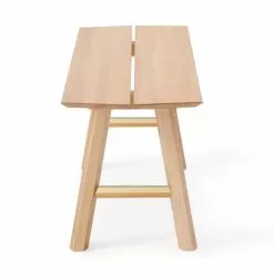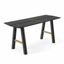 Modern bench in solid ash wood and veneer with lacquered details.