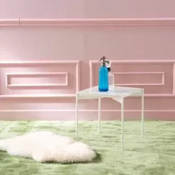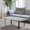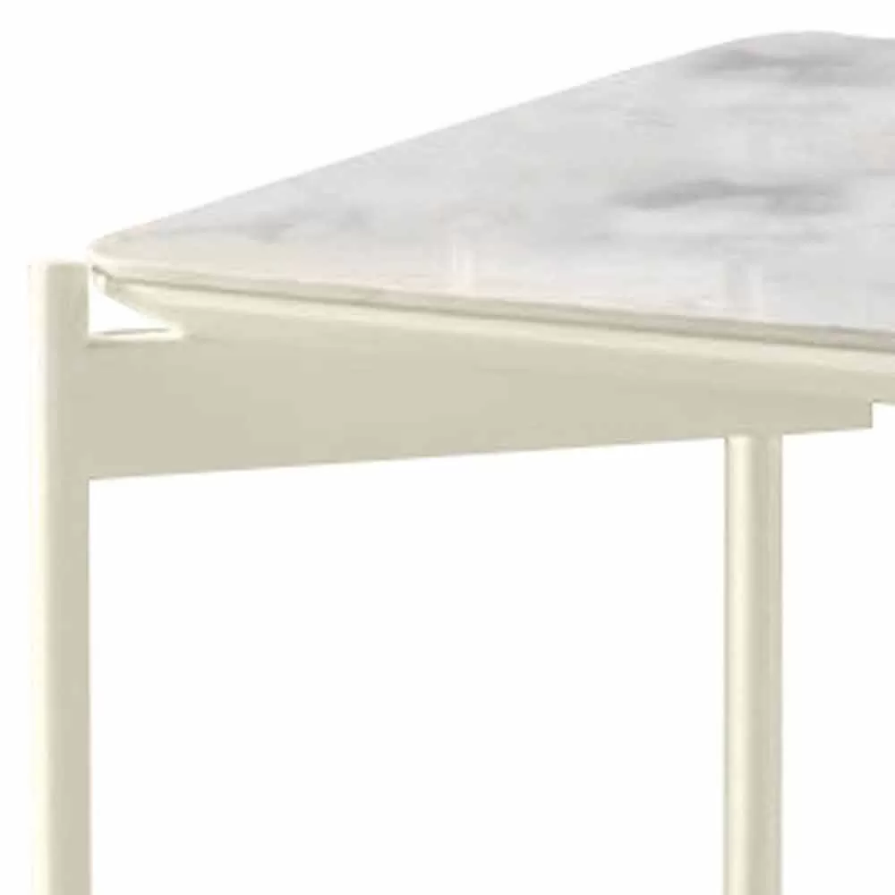 Low modern design coffee table with ceramic top and metal structure.