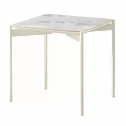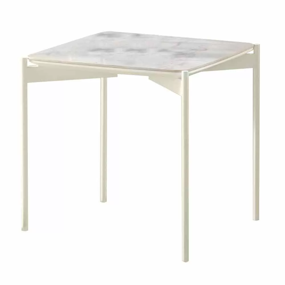 Istrice is a square coffee table made with an MDF top with a ceramic plate on top and a metal structure .