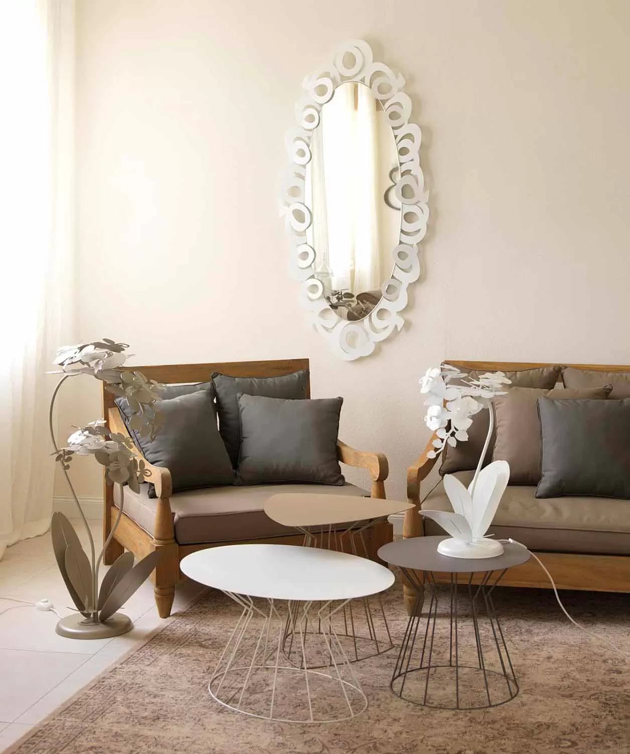 White, beige or slate coffee table for modern living room, handcrafted in Italy in iron.