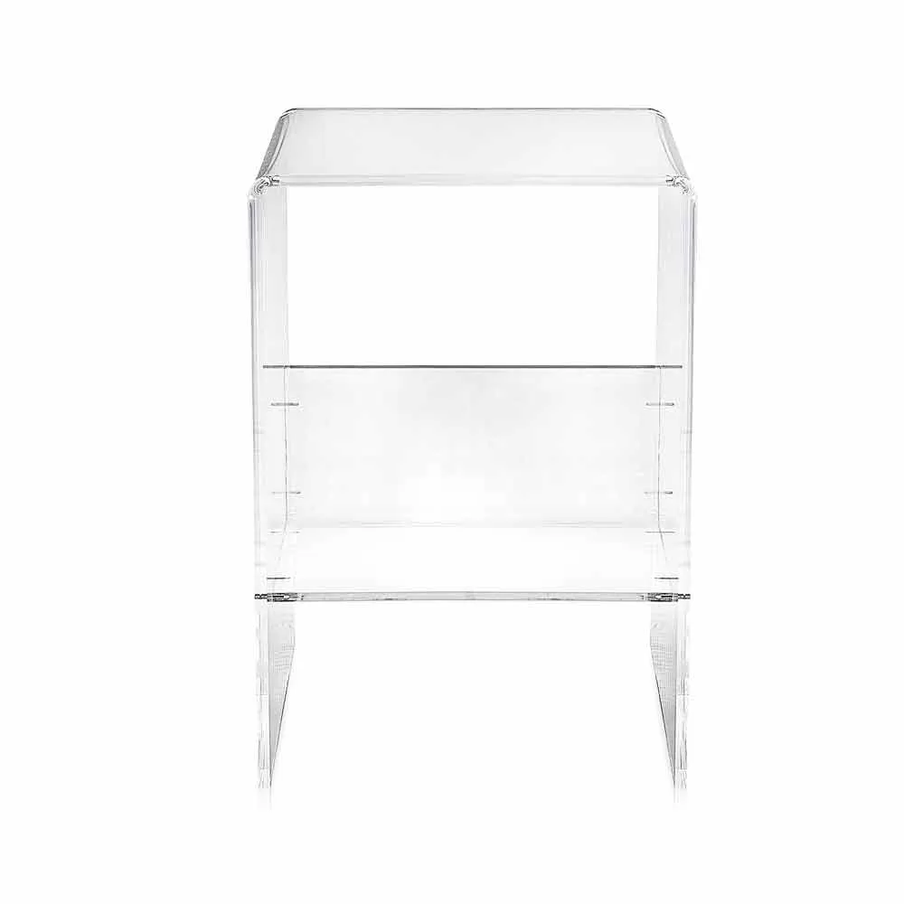 Aza can be used anywhere in the house: in the living room as a coffee table, in the bedroom as a night table or in the bathroom as a towel holder. It is made of 10 mm thick 100% PMMA plexiglass from virgin polymers. Self supporting.Â
