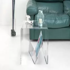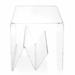 The small table CAVOUR has a practical and discreet design which is usable both as bedside or as coffe table, also outdoor. It is made with acrylic crystal PMMA 100% from virgin polymer and it has a double function: it is an extremely useful small table and and a practical magazine-rack. The physical-technical features of the plexiglass (shock-proof, non deformable, unalterable, thermal-insulating) make the small table suitable both to the indoor and outdoor spaces.