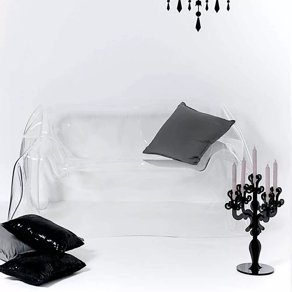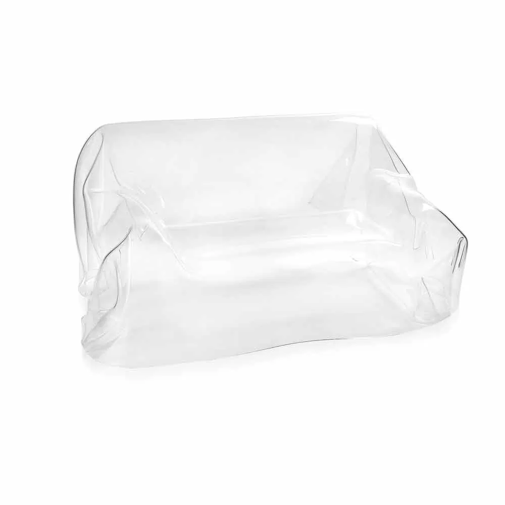Each “Jolly” sofa is a unique modern art piece. From a 100% pure PMMA transparent colour plexiglass sheet, hand-draped, comes a unique canape. Self-supporting, the armchair can accommodate 2 seaters.Â