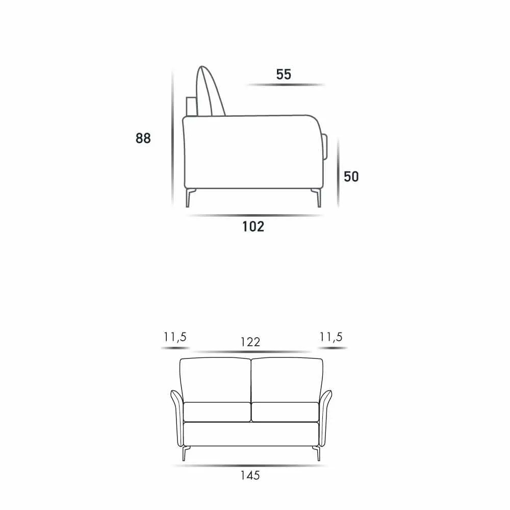 Modern design two seater sofa L.145 cm eco-leather / Erica fabric, made in Italy