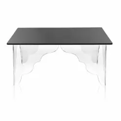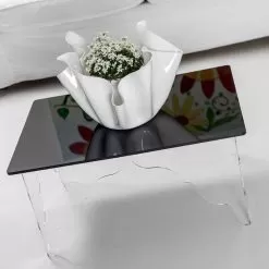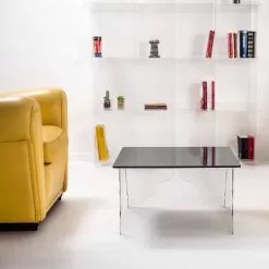 The Morita coffee table is characterized by a Liberty design. It can be used both as a coffee table or a bedside table. The “nouveau” style laser-shaped plexiglass legs support makes it exotic but discreet, while the table top gives a touch of elegance to the home environment. Both the transparent base and the table top are made of 100% pure acrylic crystal polymers.