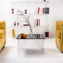 The Morita coffee table is characterized by a Liberty design. It can be used both as a coffee table or a bedside table. The “nouveau” style laser-shaped plexiglass legs support makes it exotic but discreet, while the table top gives a touch of elegance to the home environment. Both the transparent base and the table top are made of 100% pure acrylic crystal polymers.