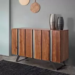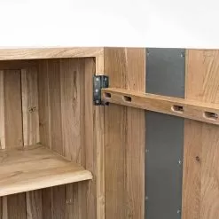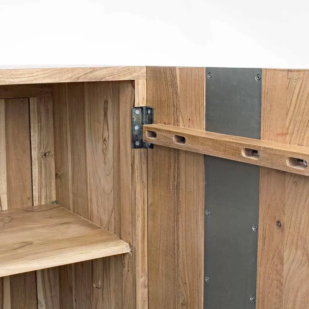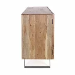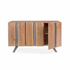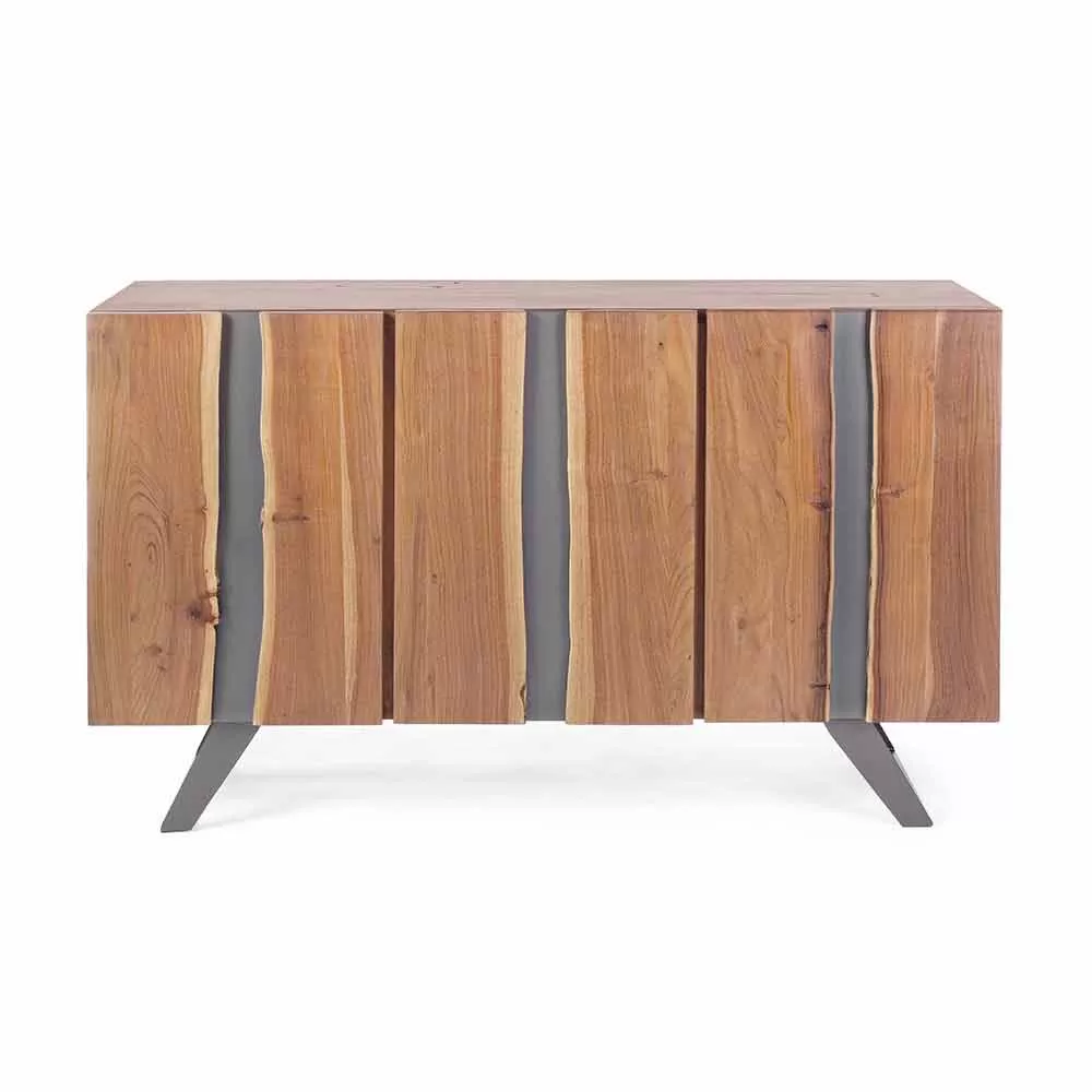 Structure in acacia wood , legs in epoxy powder coated steel . Doors with metal inserts. Finish based on polyurethane paint.