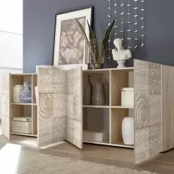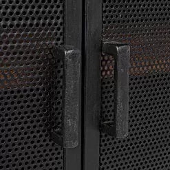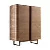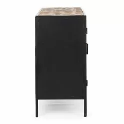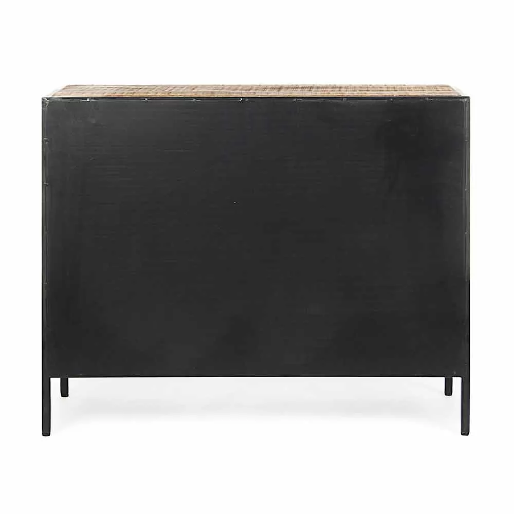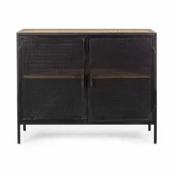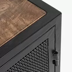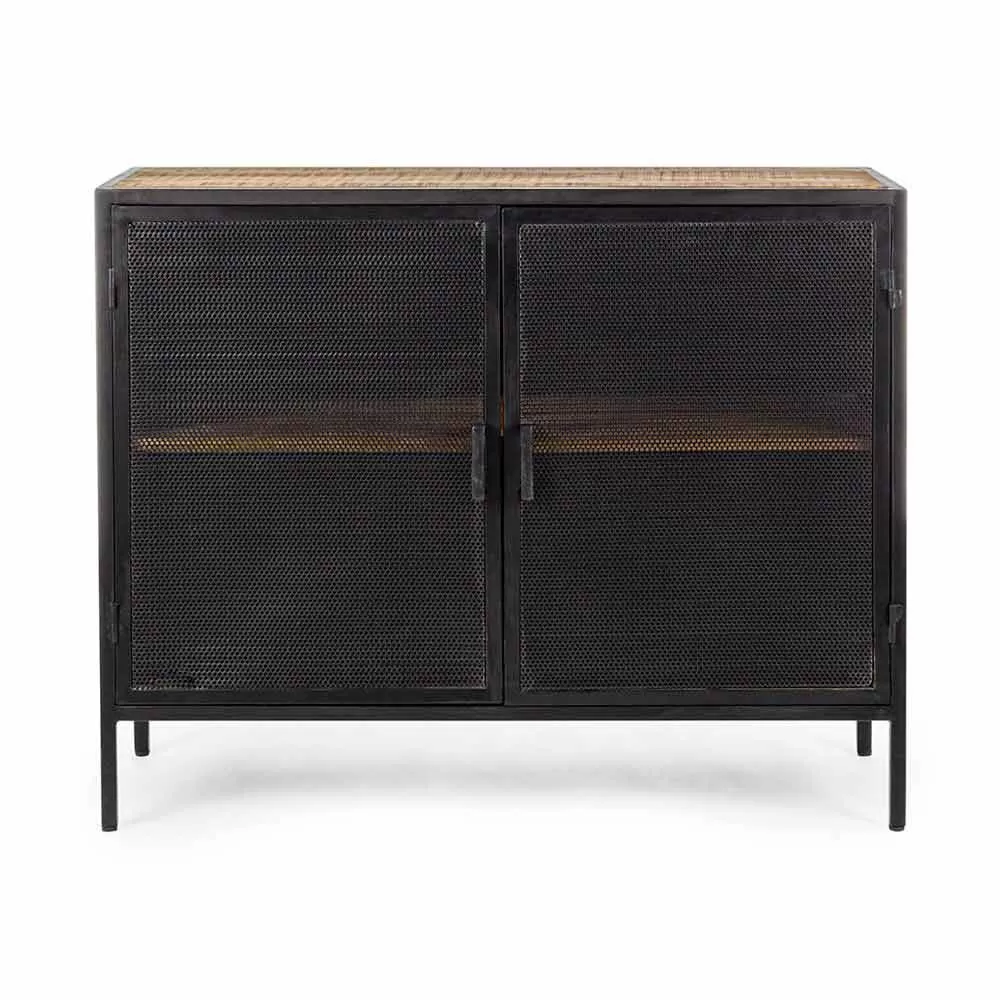 Steel structure painted with epoxy powder. Shelves in mango wood with water-based finish. Door compartment including shelf.
