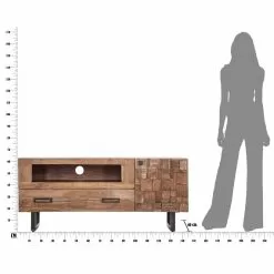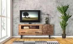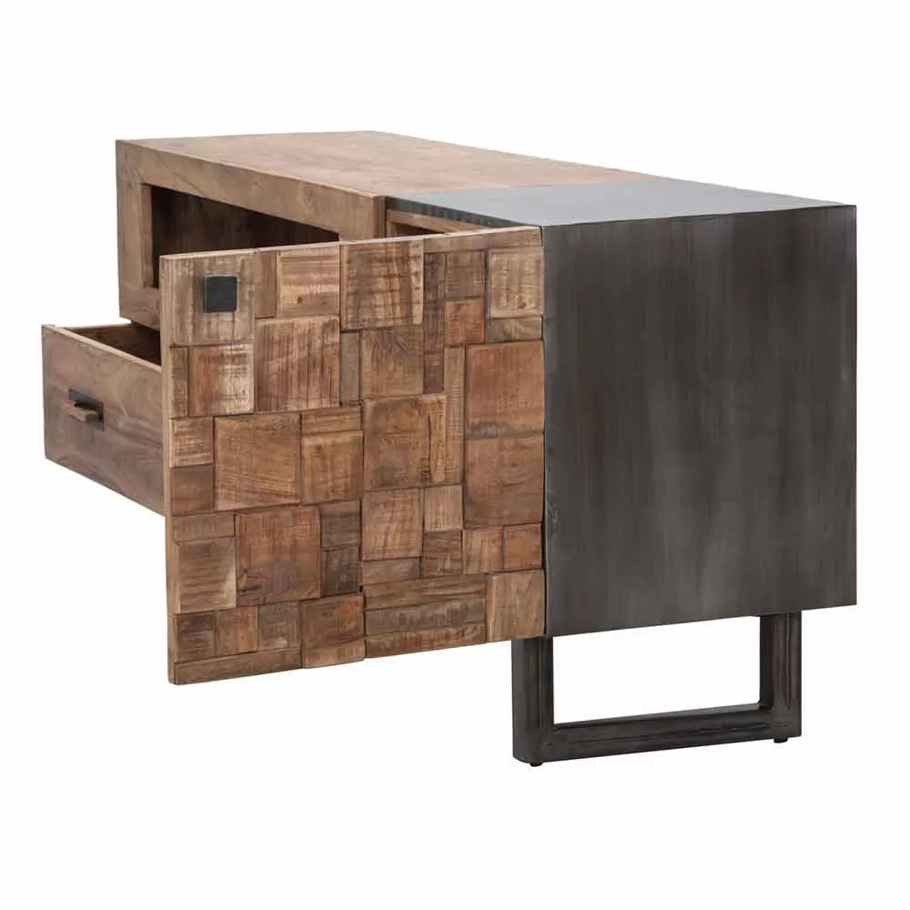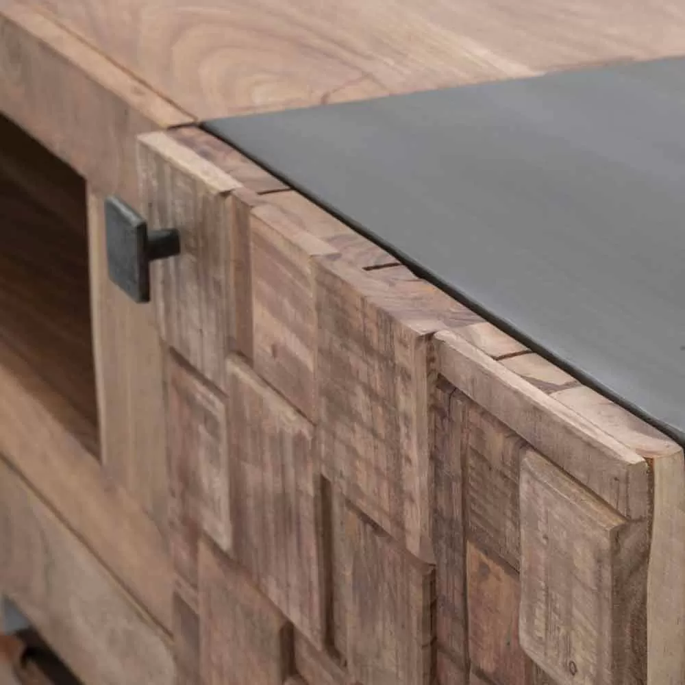 Modern design TV cabinet made entirely of iron and acacia wood.