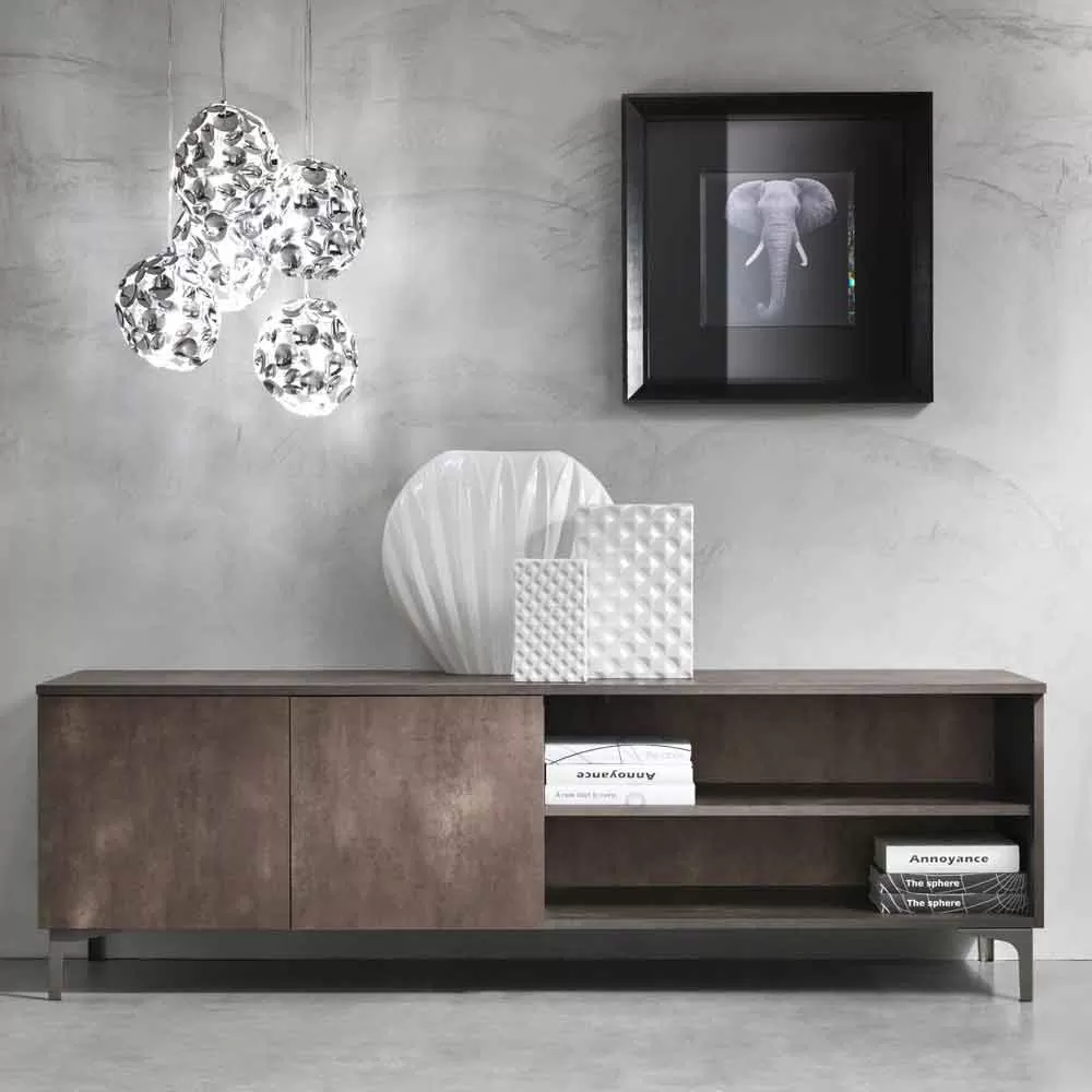 Living room TV cabinet with two doors, modern design in melamine wood made in Italy.