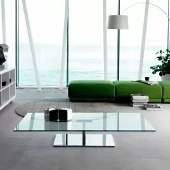 Rectangular coffee table in extra-clear or smoked glass, made in Italy design.