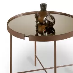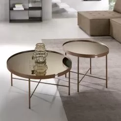 Round coffee table in mirror effect glass and metal Made in Italy.