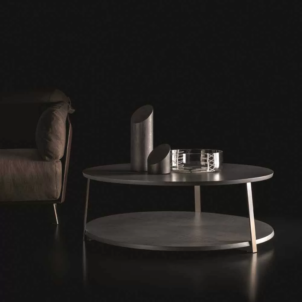 Round coffee table in mdf with metal structure Made in Italy, luxury.