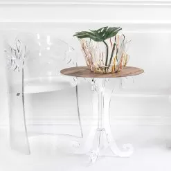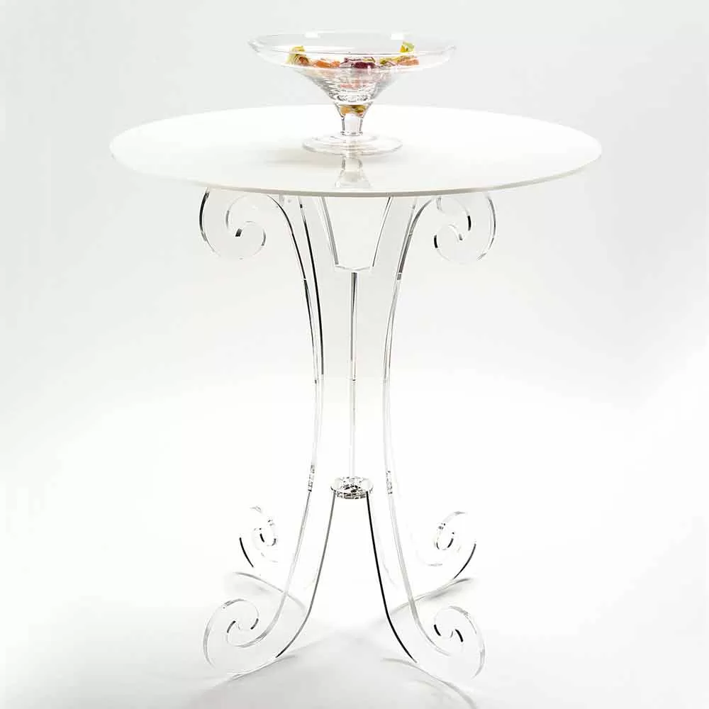 Sofa side table in transparent and white plexiglass or wood of refined round design made in Italy.