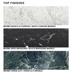 Featuring a marble top (thickness 20mm) and a base in glossy white lacquered cast aluminium.