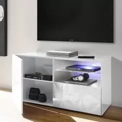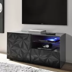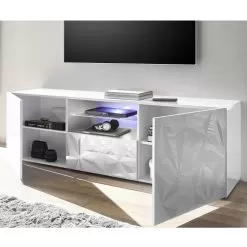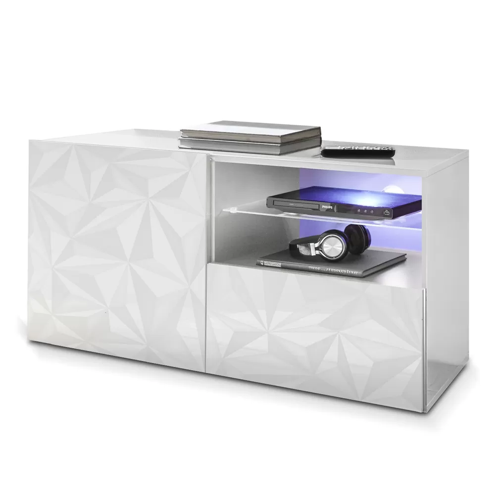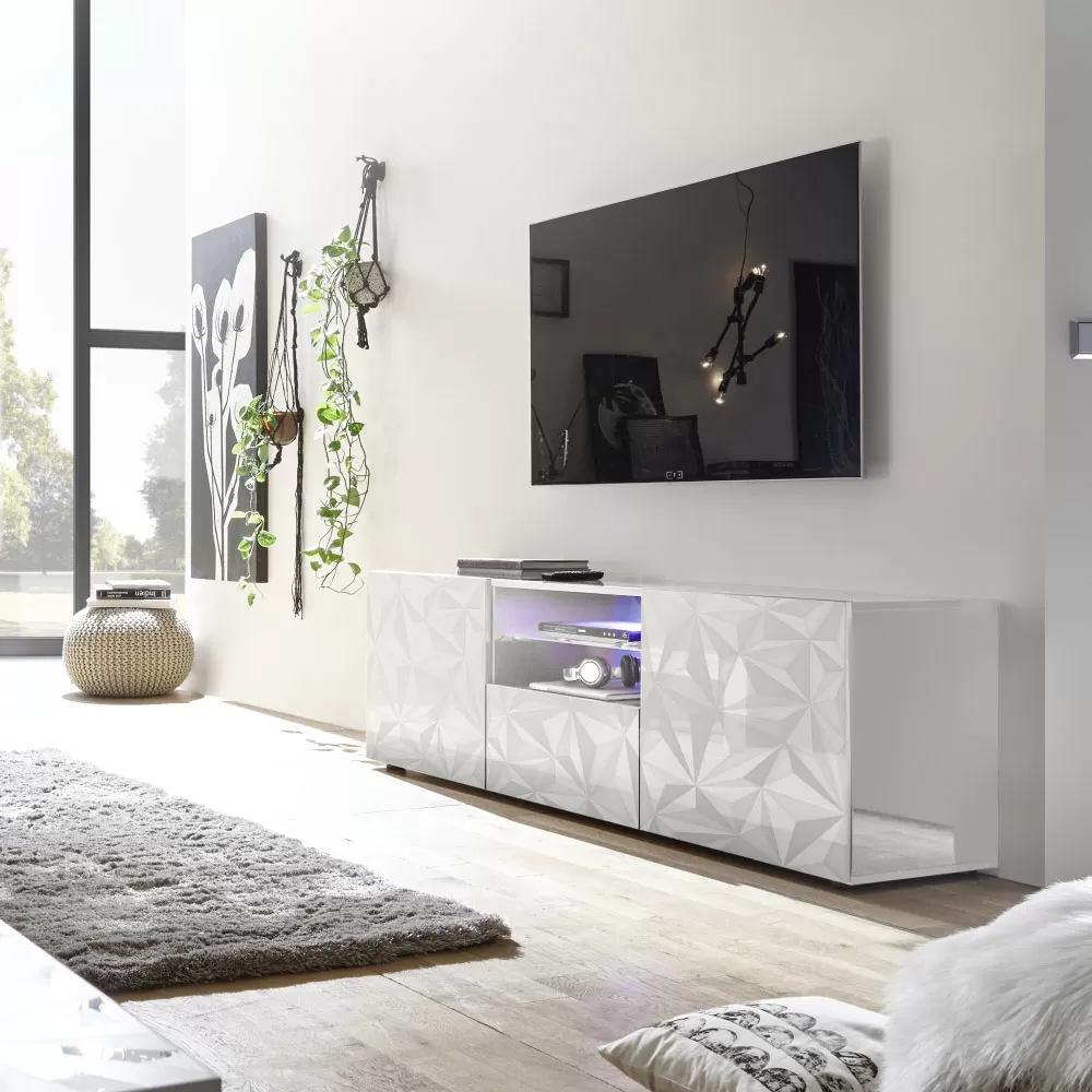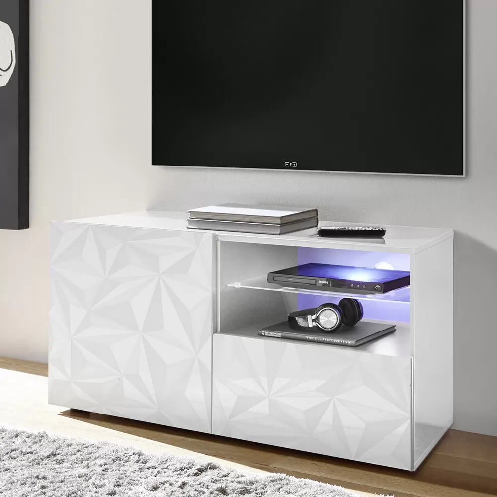 TV stand in silk-screened glossy laminated wood Made in Italy.