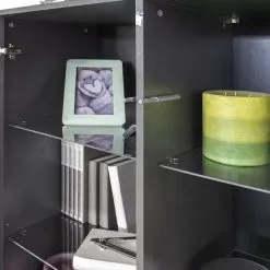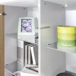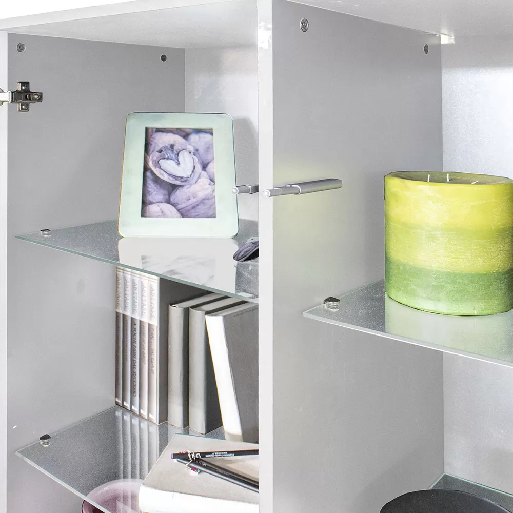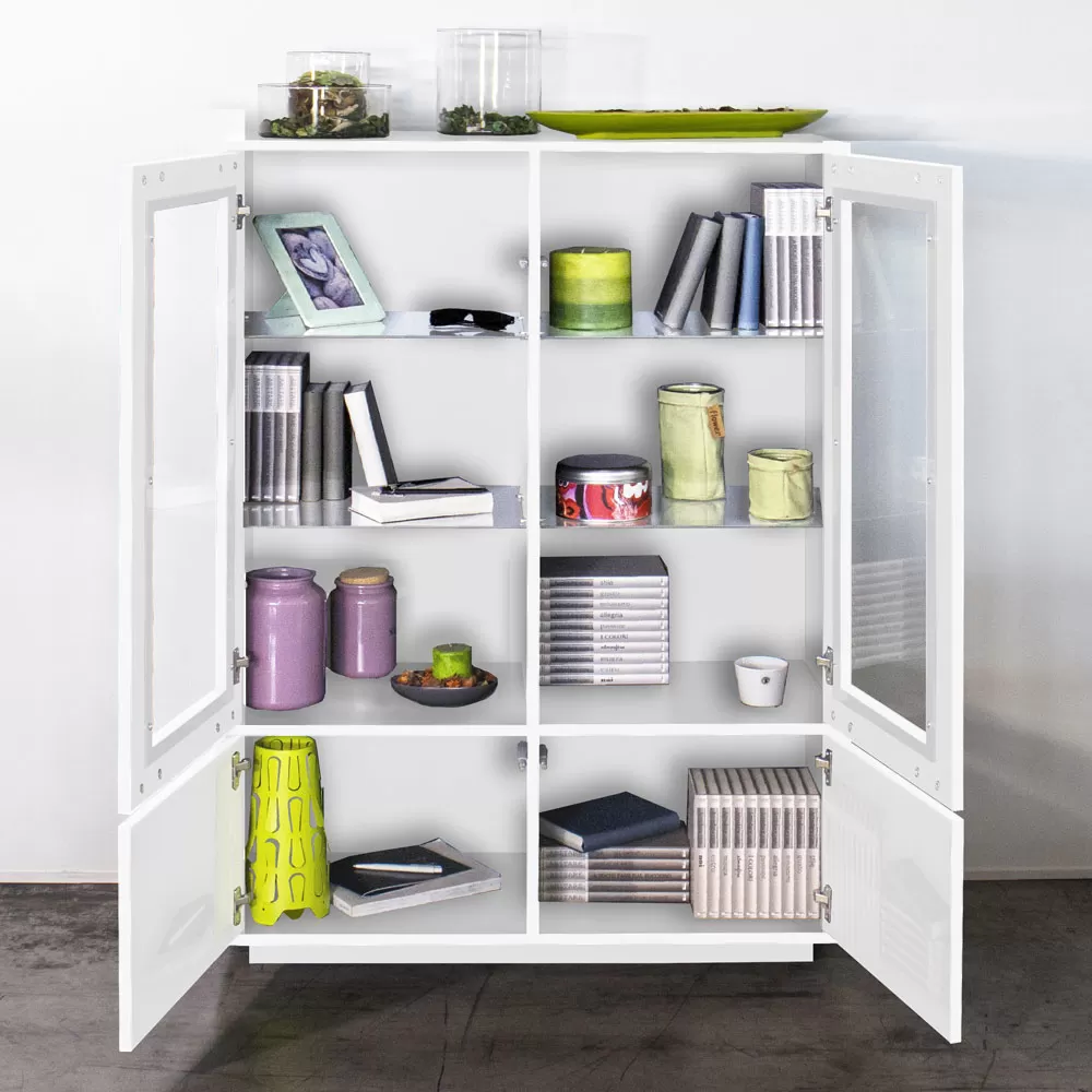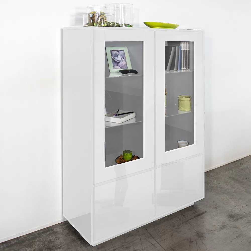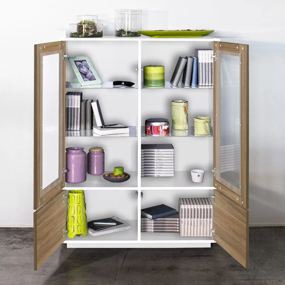 Living room display cabinet in melamine wood with Made in Italy glass panels.