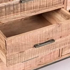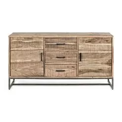 Sideboard in acacia wood with 2 doors and 3 drawers in 2 sizes.