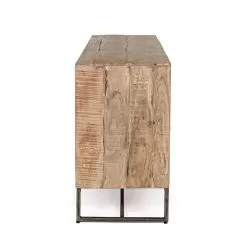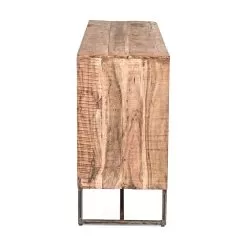 This design low sideboard for the living room features an acacia wood structure with a plywood back and epoxy powder coated steel feet.