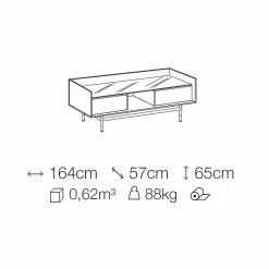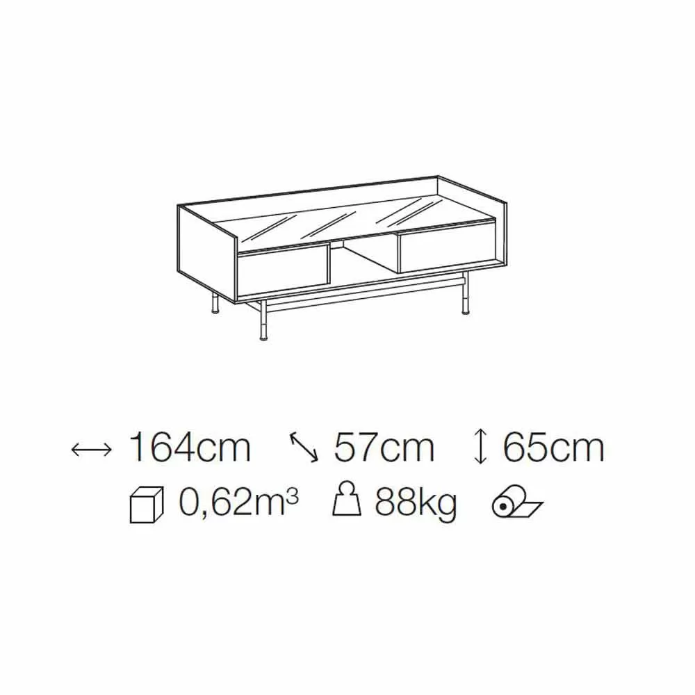 Sideboard with structure in mdf and metal with golden feet Made in Italy.