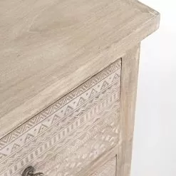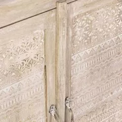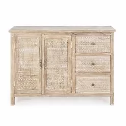 Rustic style sideboard made of mango wood with handmade decorations.