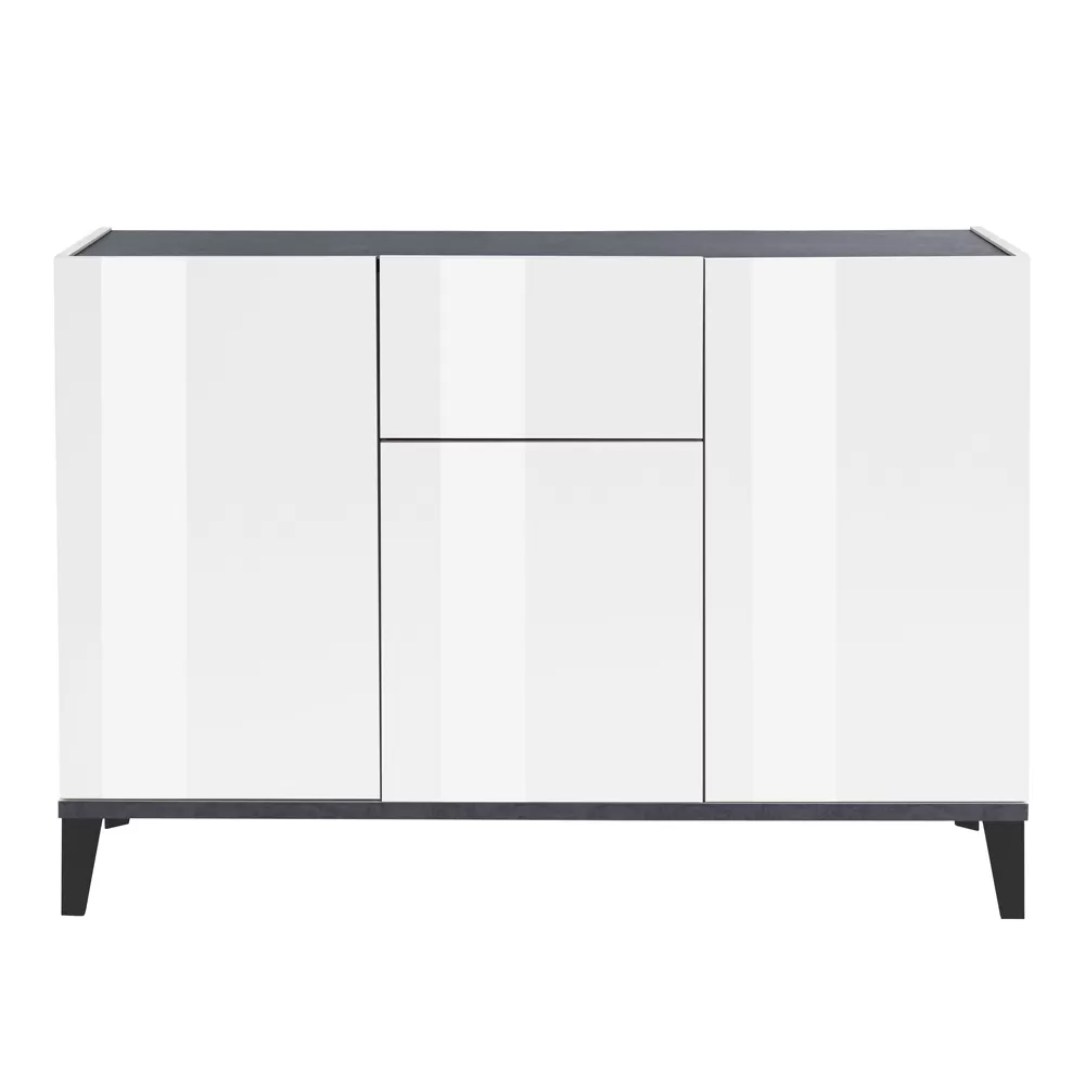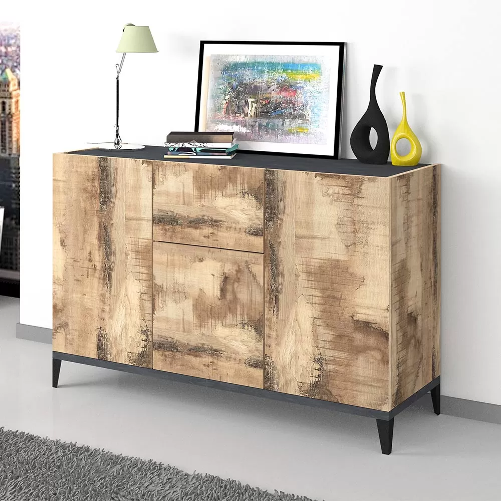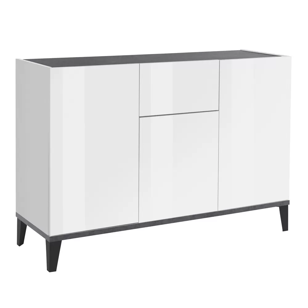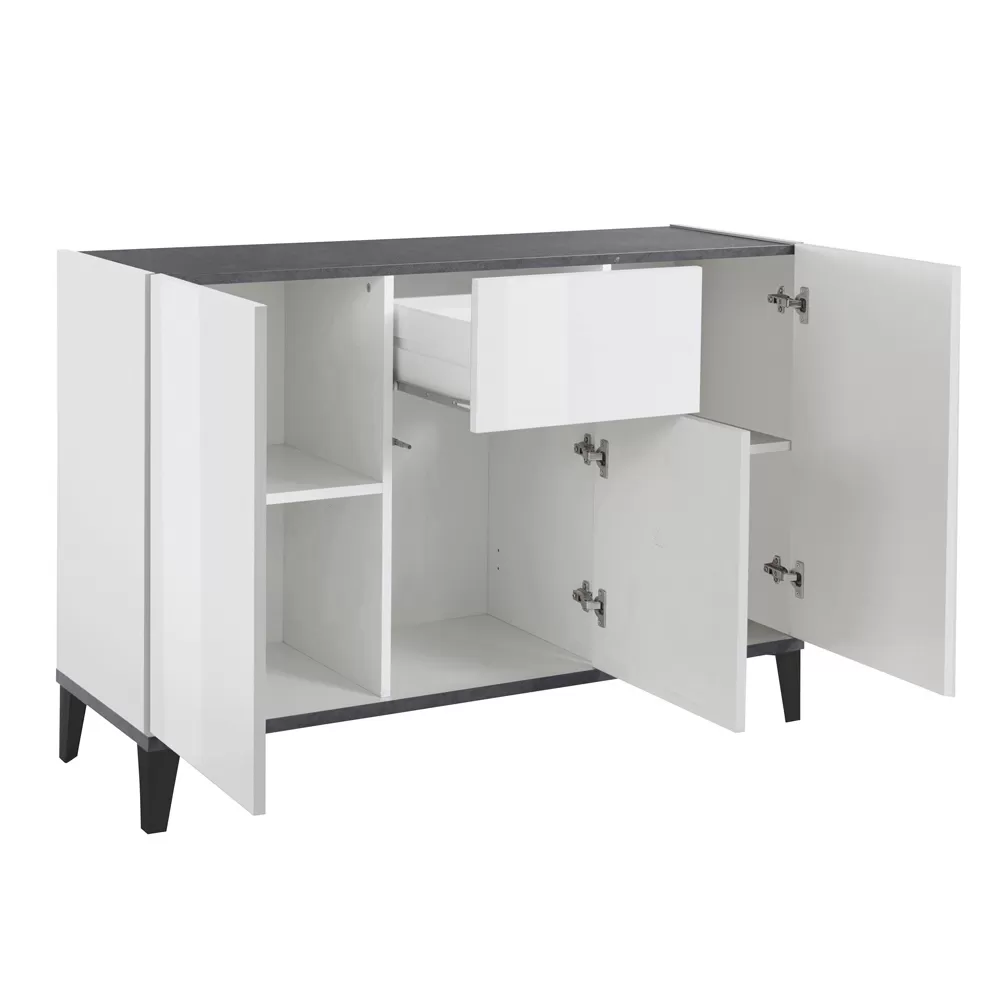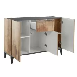 Living room or kitchen sideboard made in Italy with melamine wood structure in simple but elegant tones complete with 3 doors with hinged opening , 2 shelves that make the product roomy and functional and a central sliding drawer for storing various objects. Ideal to be placed in the corridor or in the entrance area, the compact dimensions of this sideboard allow you to maintain order and save space , fitting perfectly into any environment and creating perfect harmony with the surrounding elements.