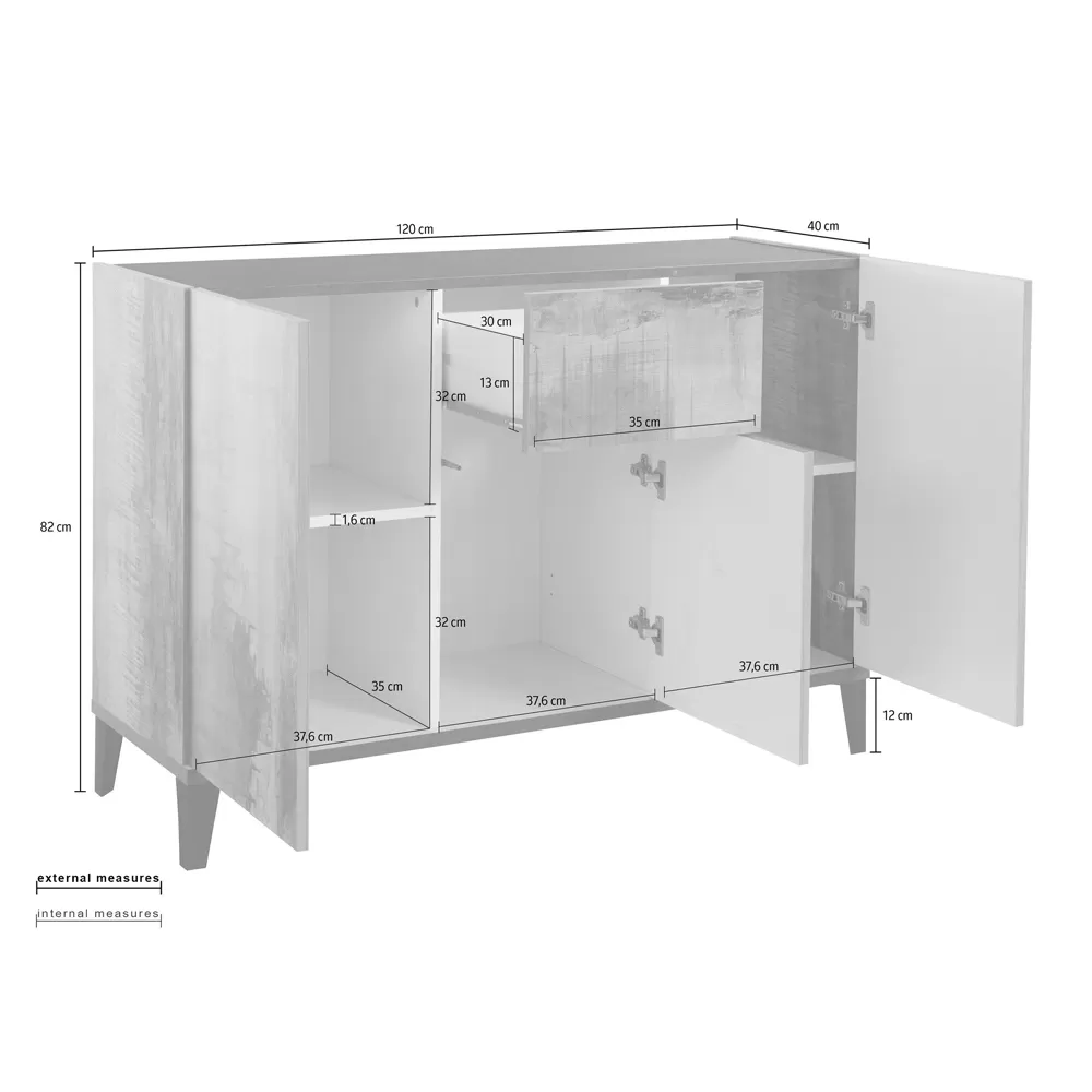 3-door sideboard in melamine wood with drawer and 2 shelves Made in Italy.