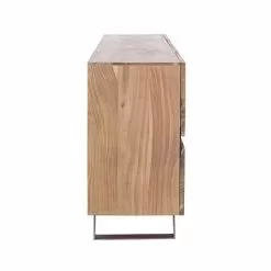 Structure in acacia wood , legs in epoxy powder coated steel . Doors with metal inserts. Finish based on polyurethane paint. Door compartment including shelf.