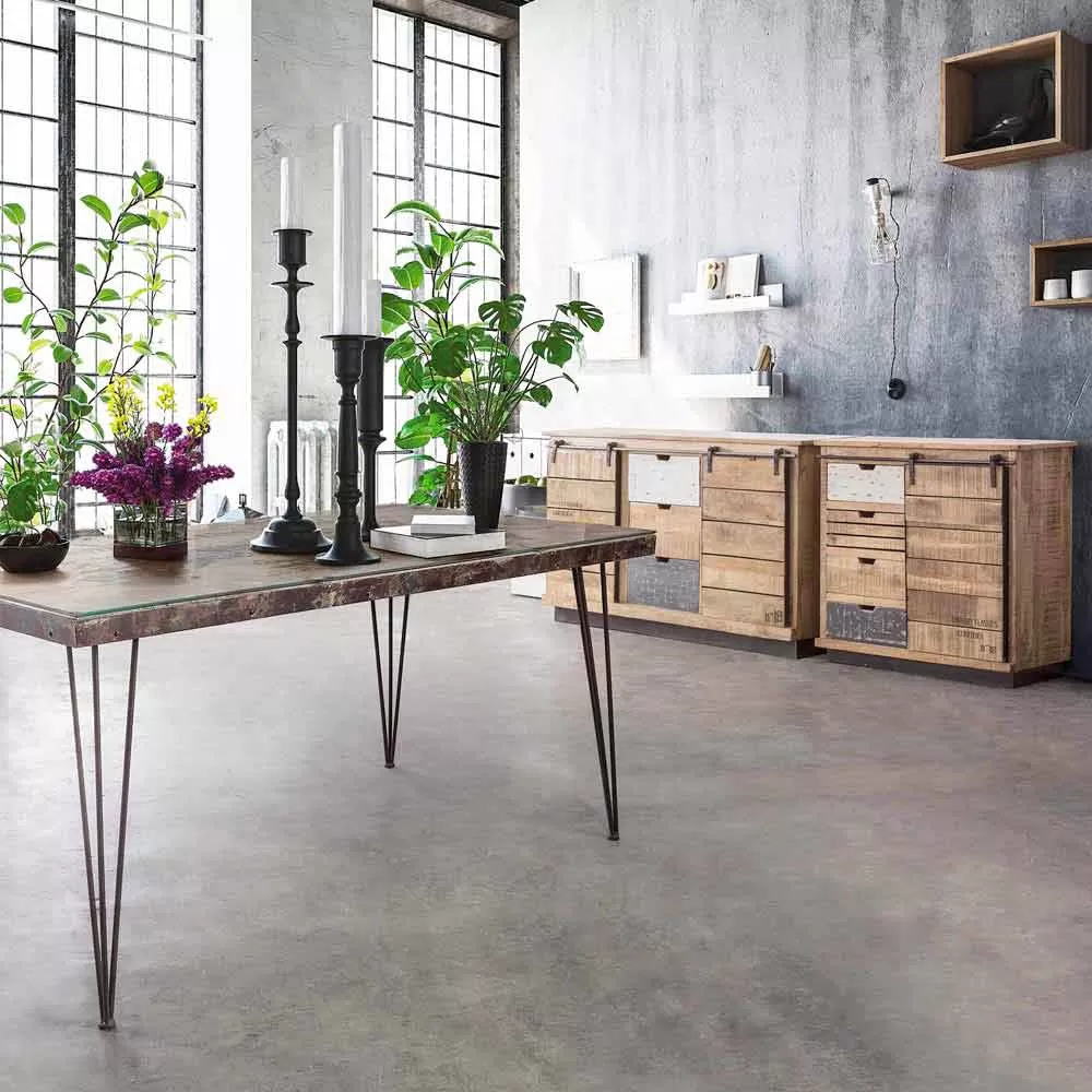Industrial style sideboard in mango wood and steel.