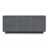Living room sideboard with a modern style completely made in Italy composed of iron feet with nickel finish and  charcoal finish mdf shell with nickel finish doors . The use of simple but resistant materials transform this  product in a piece of furniture with great versatility and an attractive and interesting appearance.