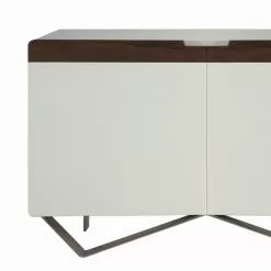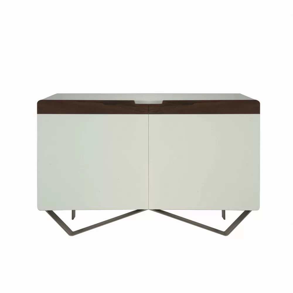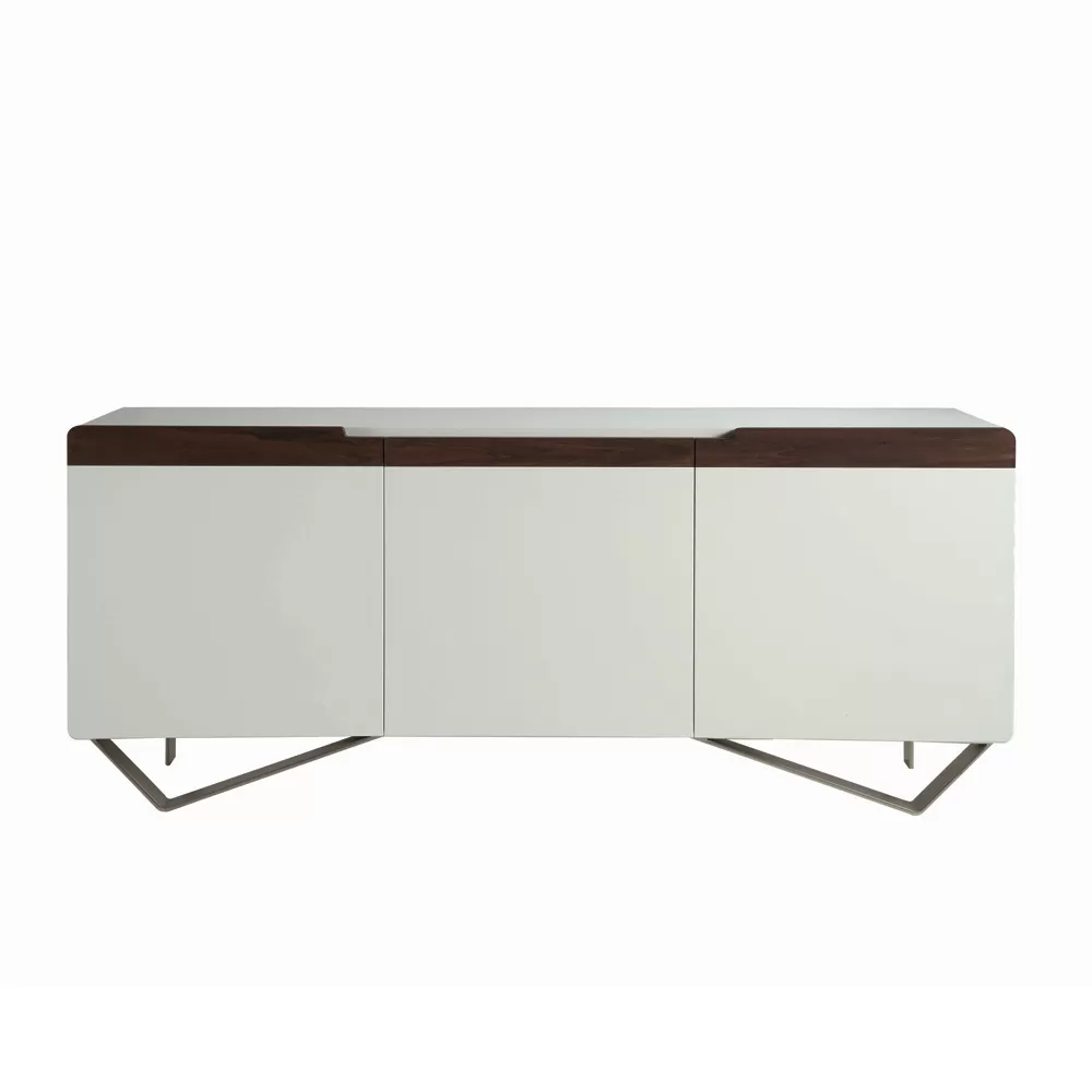 Living room sideboard entirely made in Italy with iron feet in nickel finish , shell in white mdf complete with doors with handle in solid tulipier wood with canaletto finish  made in Italy through the use of quality workmanship and materials combined with the refined taste of a contemporary design. This sideboard is available in two different sizes with two or three doors and internal shelves.