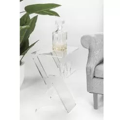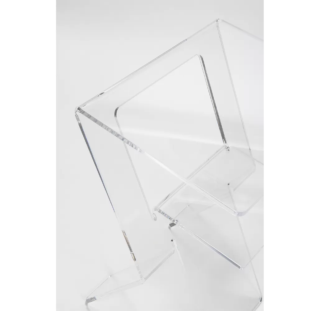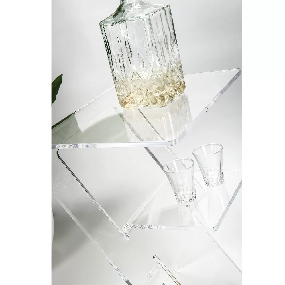 This sofa side table is made entirely of transparent plexiglass which, thanks to its physical-technical characteristics, makes the product  suitable for both indoor and outdoor environments.