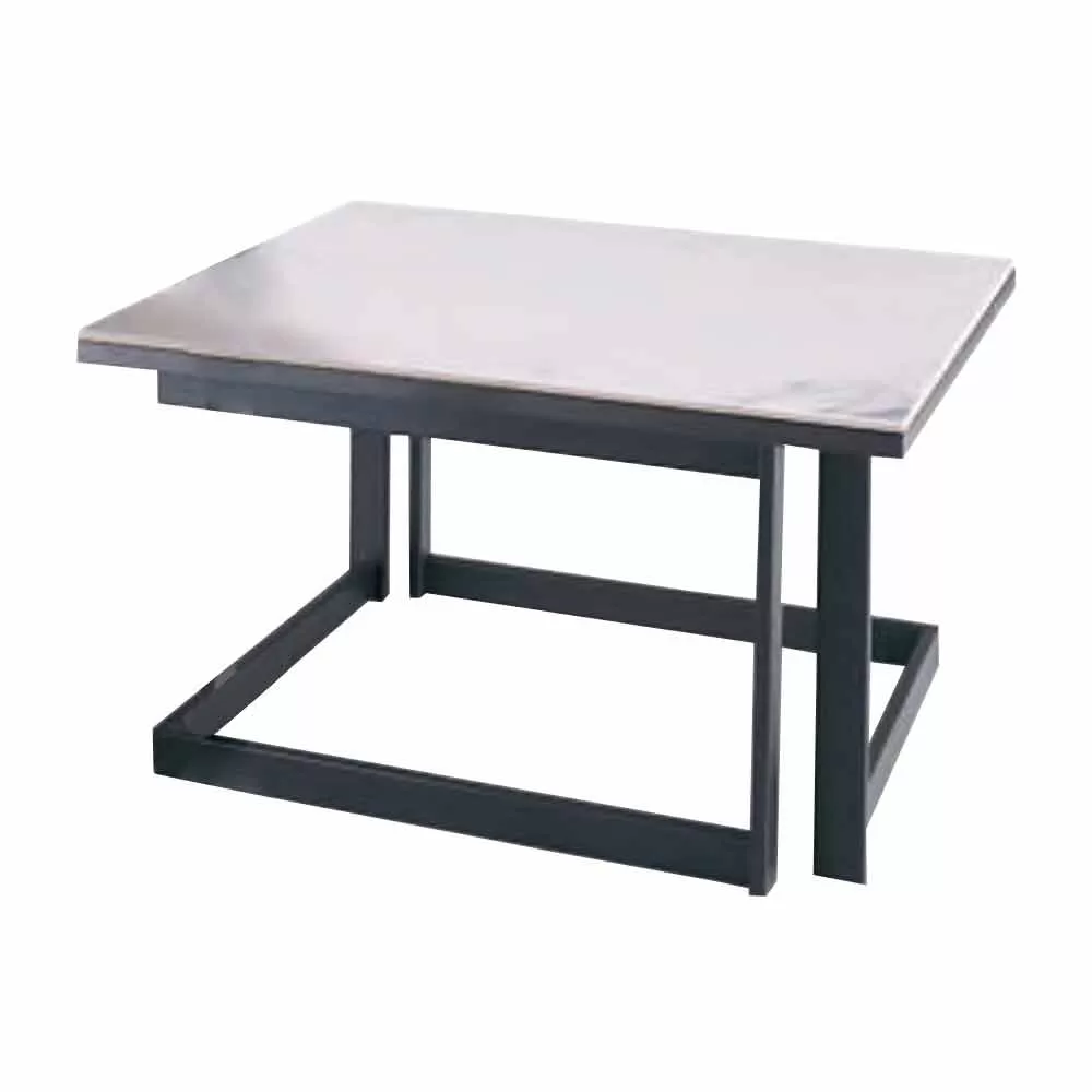 Coffee table with base in black gray lacquered metal and square top in polished or matt marble stoneware 2 cm thick.