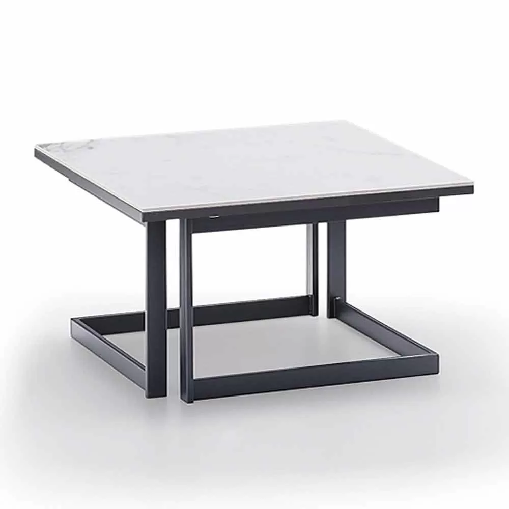 Modern metal coffee table with square top in marble stoneware Made in Italy.