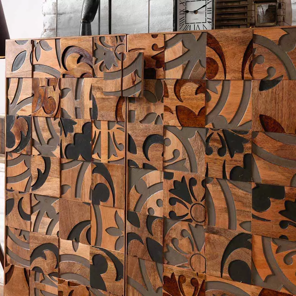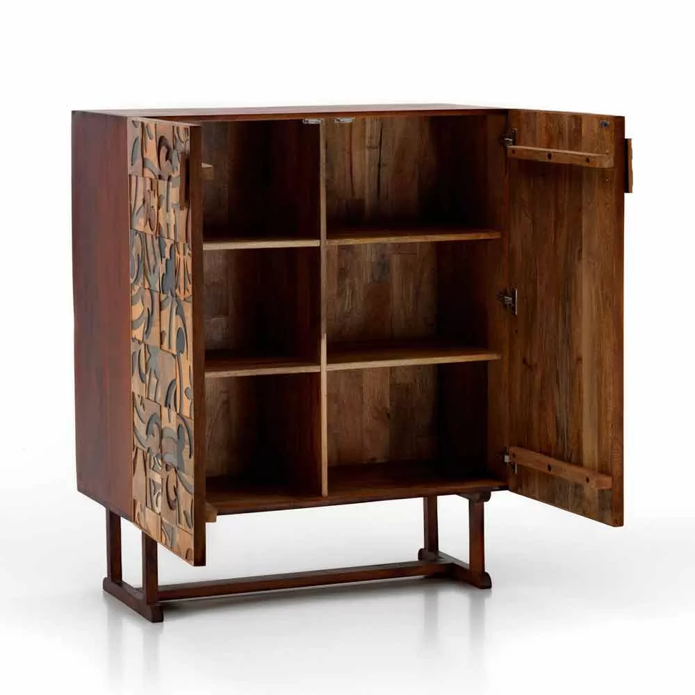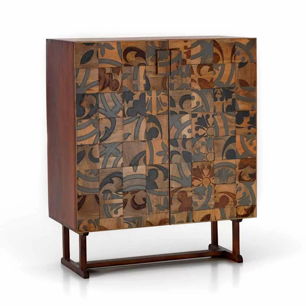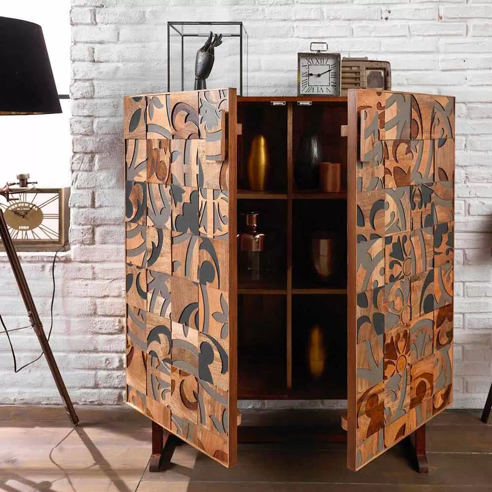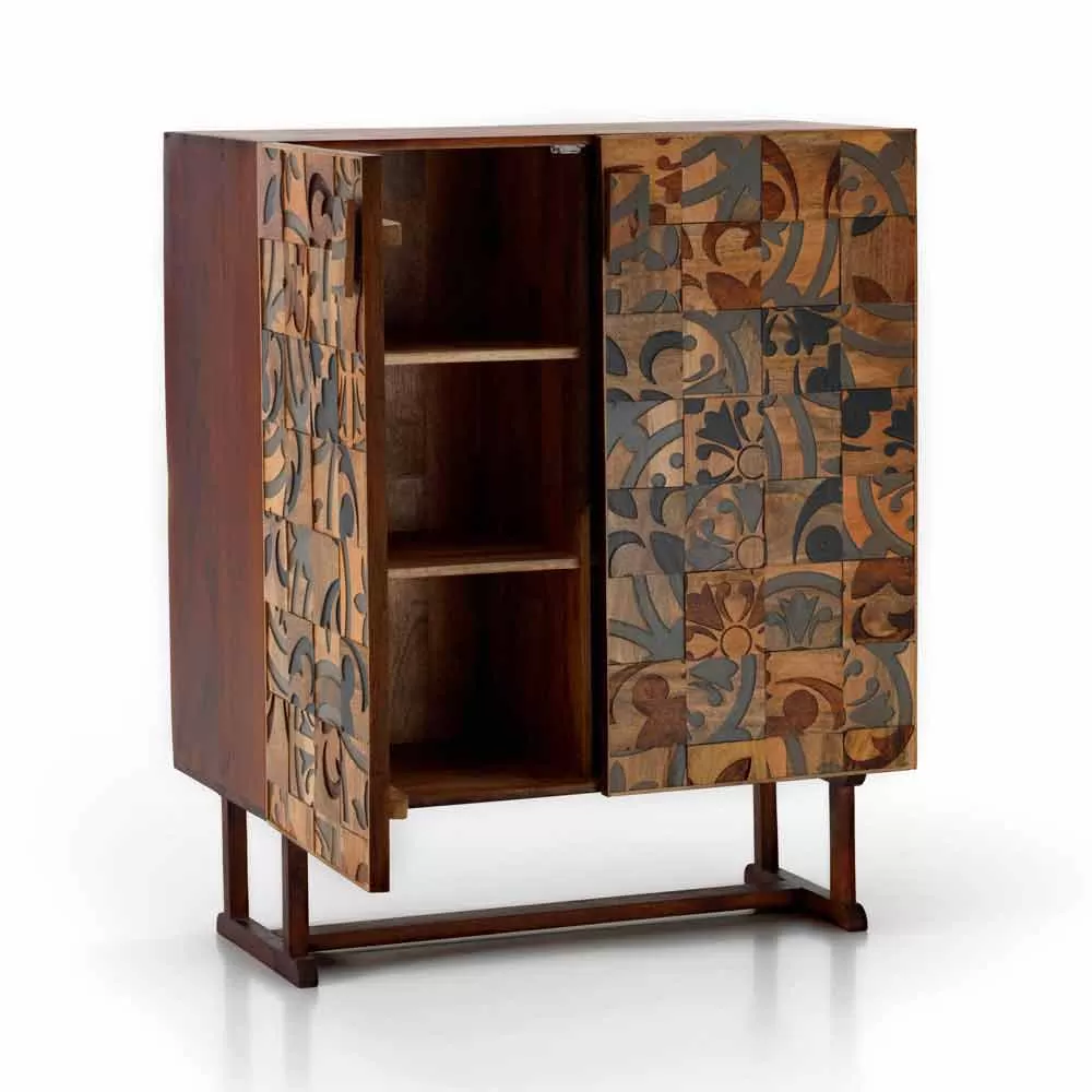 Storage unit with two doors with a modern, chic and ethnic design, perfect to be integrated into any environment from domestic to contract.