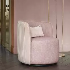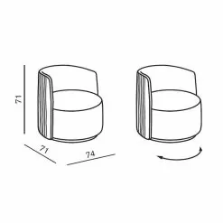 An elegant design outlined by soft and round shapes embellished and made unique by the particular processing that covers the entire backrest, evoking a retro style that is perfectly combined with the modern touch given by the swivel base. What is born is a versatile and classy complement that combines vintage and at the same time contemporary elements, thus managing to adapt to any furnishing situation, enriching its aesthetics with an original and avant-garde touch.