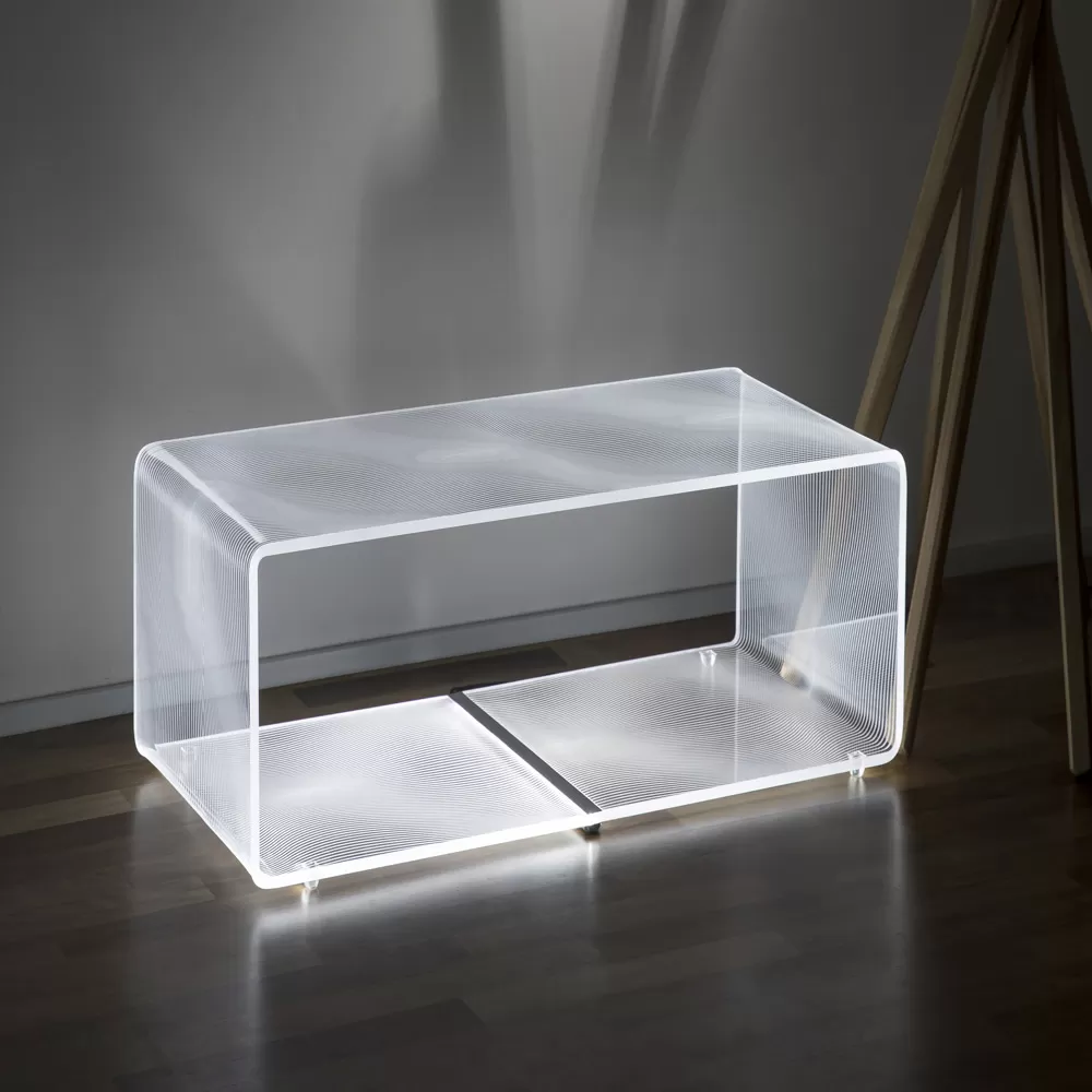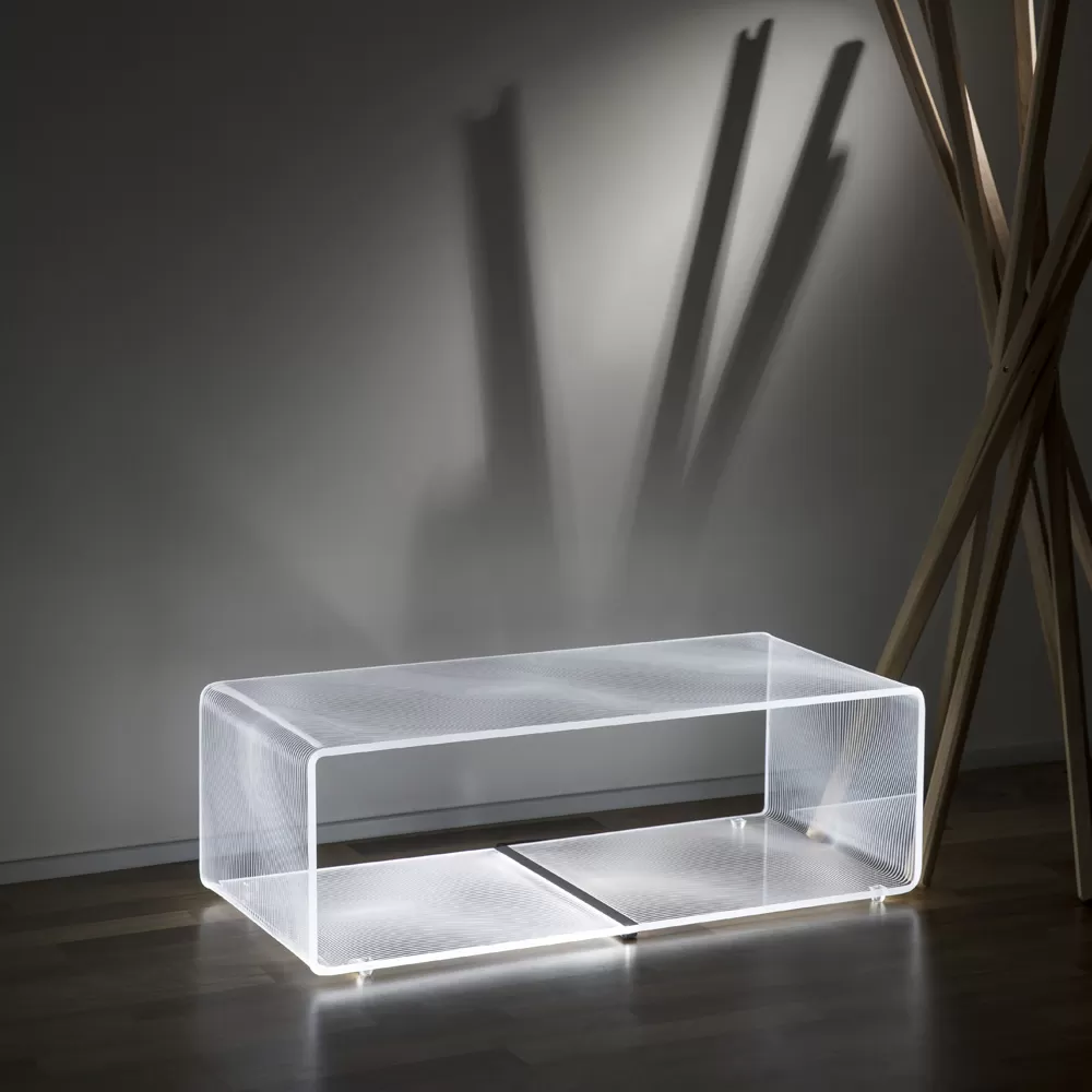Led strip light table in transparent acrylic 2 variants, made in Italy.