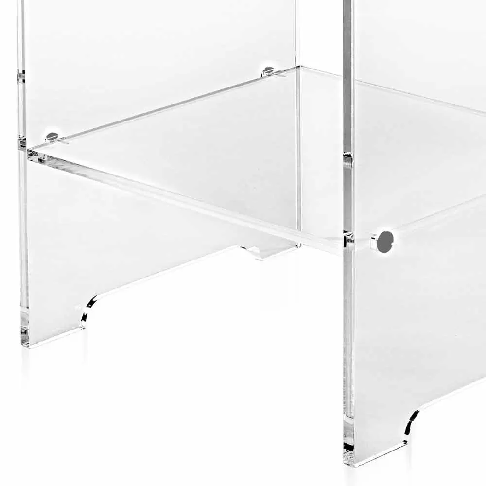 Next to your bed as a bedside table, next to the sofa as a coffee table, next to the bathtub as a towel holder or even for beauty products: the table Mimi is 10mm thick and it is made in 100% PMMA virgin polymer plexiglass which has been laser cut and bent at high temperatures. Self supporting.Â