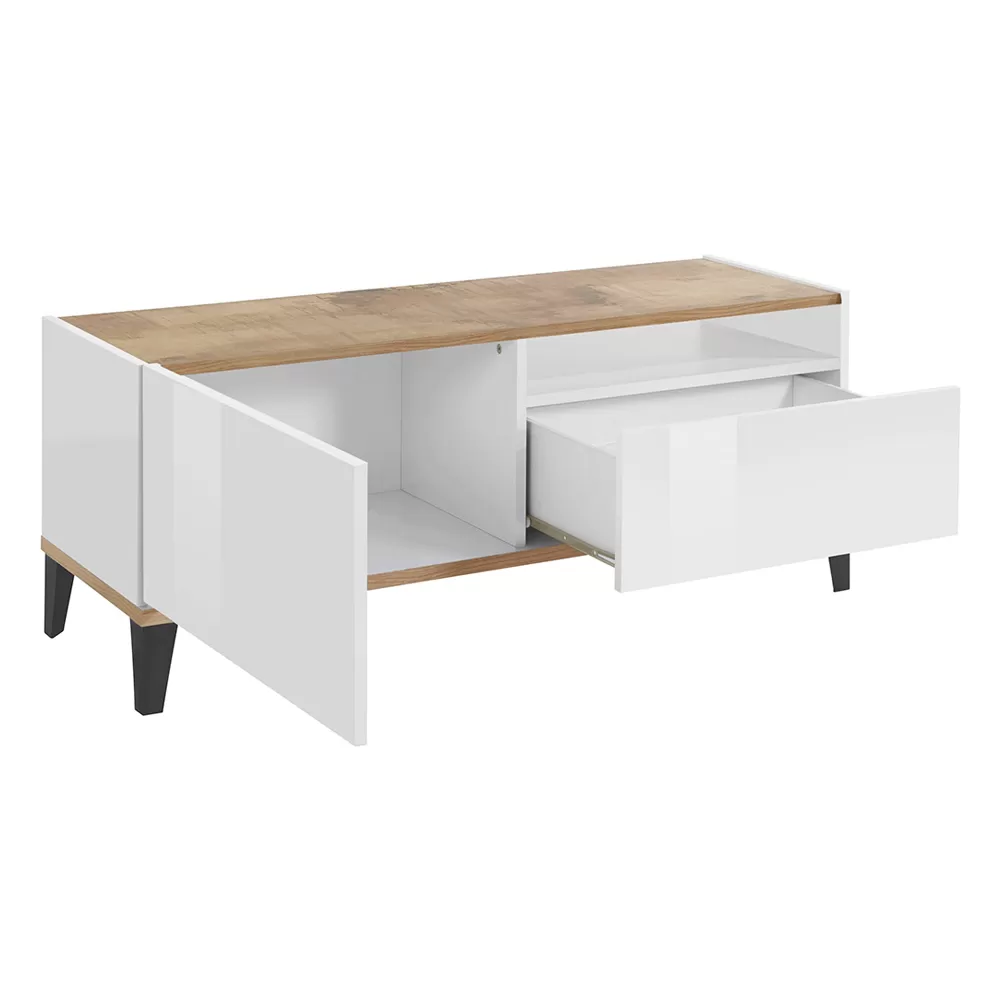 TV cabinet in melamine with side sliding drawer Made in Italy.