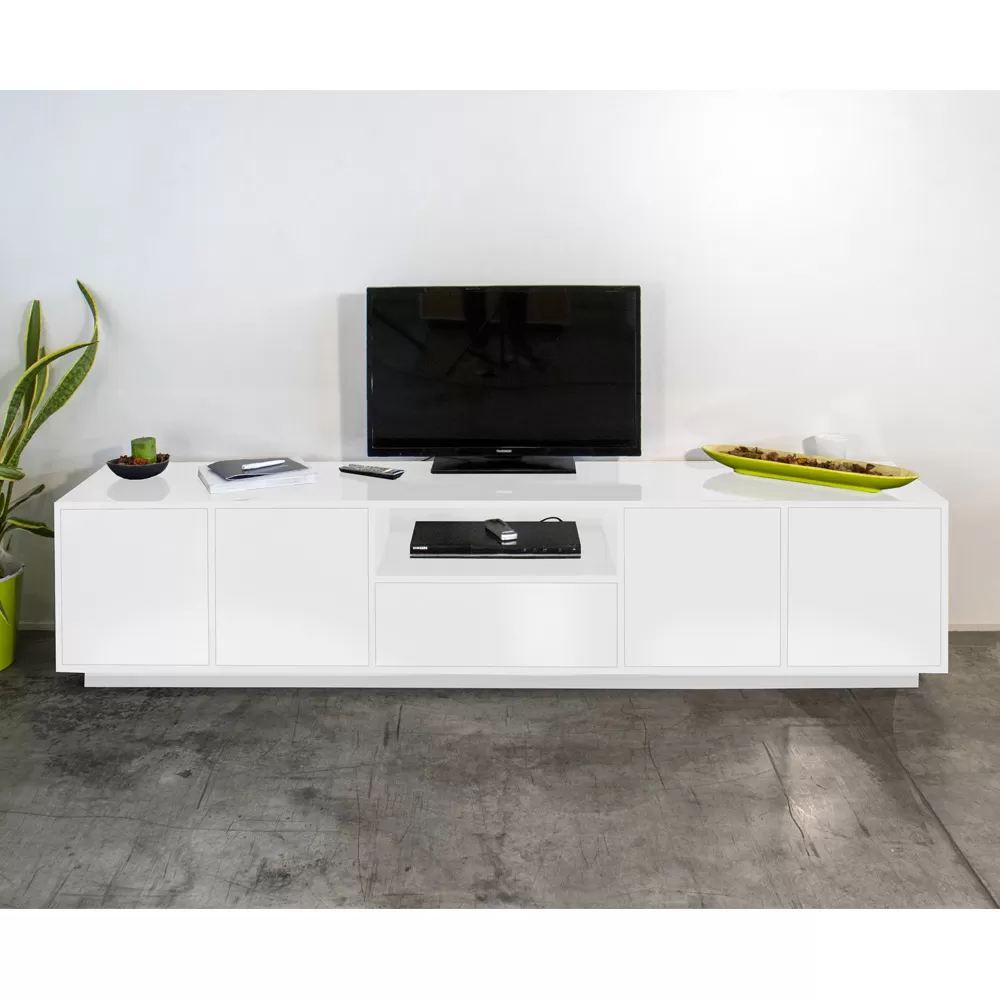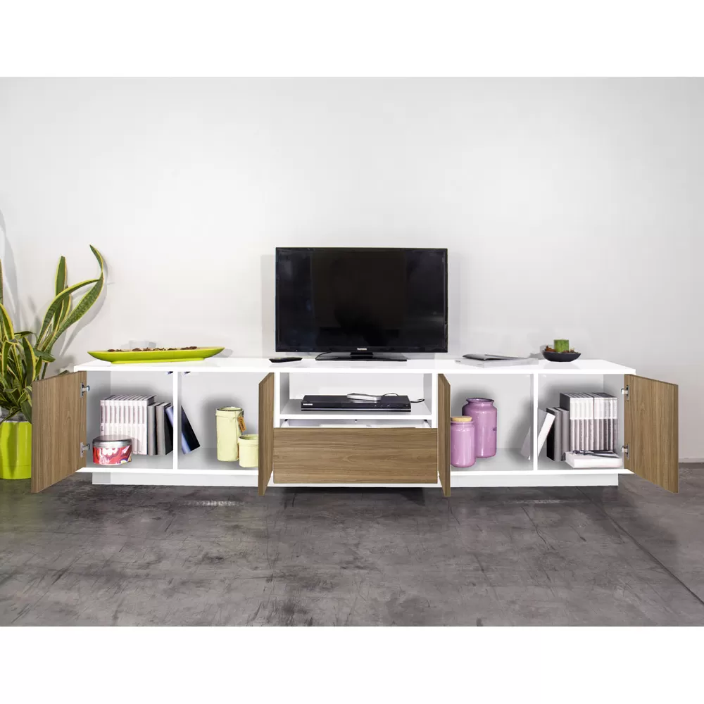 This TV cabinet  is capable of creating a splendid central point in the living room making the living area more tidy and bright. It is a piece of furniture with a minimal design that combines an elegant aesthetic with a wide utility and fits perfectly into any living room, creating perfect harmony with the surrounding elements.