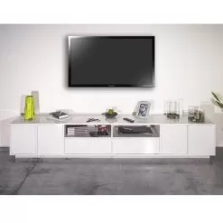 - L 260 x P 41.4 x H 46 cm – 4 doors, 2 open compartments and 2 drawers.