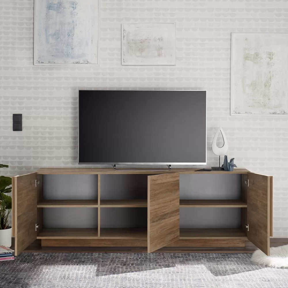 TV stand in laminated wood with doors and internal shelves Made in Italy.