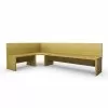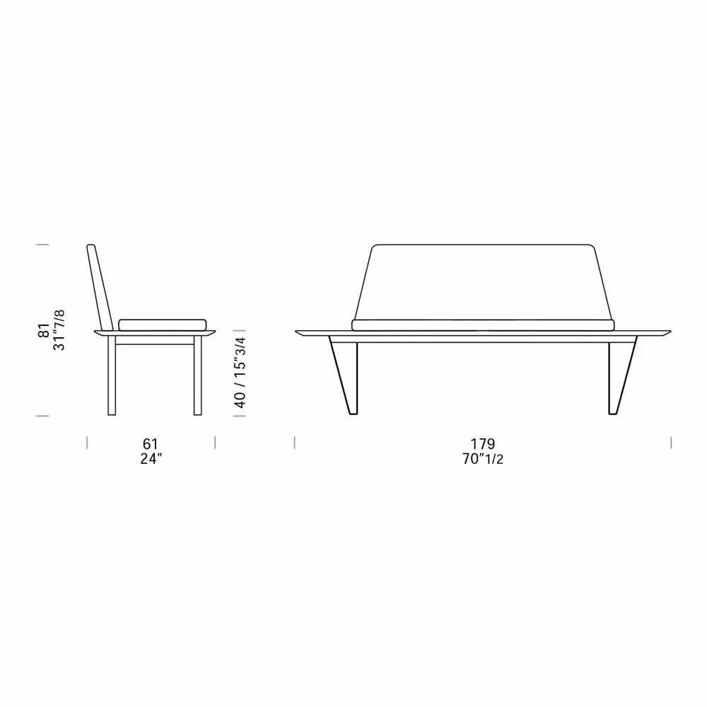 This indoor bench features a unique and inimitable design with geometric elements and soft lines that create an elegant and original image.