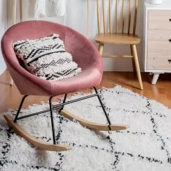Rocking armchair with structure in steel and birch wood, upholstered seat with velvet effect 3 finishes.