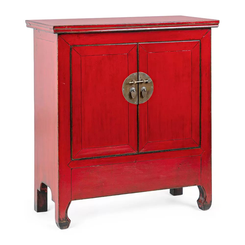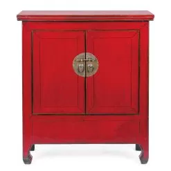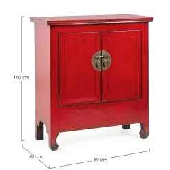 Low cabinet in red elm wood with 2 doors, vintage style design.