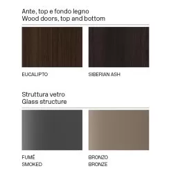 A cupboard characterized by a strong contemporary aesthetic designed for different uses and different areas of the house, customizable for finishes and sizes according to your tastes and needs. The elegant combination of the majesty of wood and the refined touch of glass gives life to an exclusive furnishing accessory , whose design is best suited to the needs of those who love to furnish with character and refinement for results with a strong emotional impact.