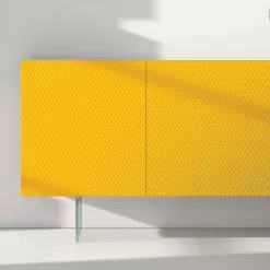 Yellow Lacquered Mdf Sideboard With 3 Doors And Glass Feet Made In Italy – Ciara
