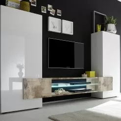 Wooden TV Stand With Doors And Illuminated Shelf Made In Italy – Sevesto